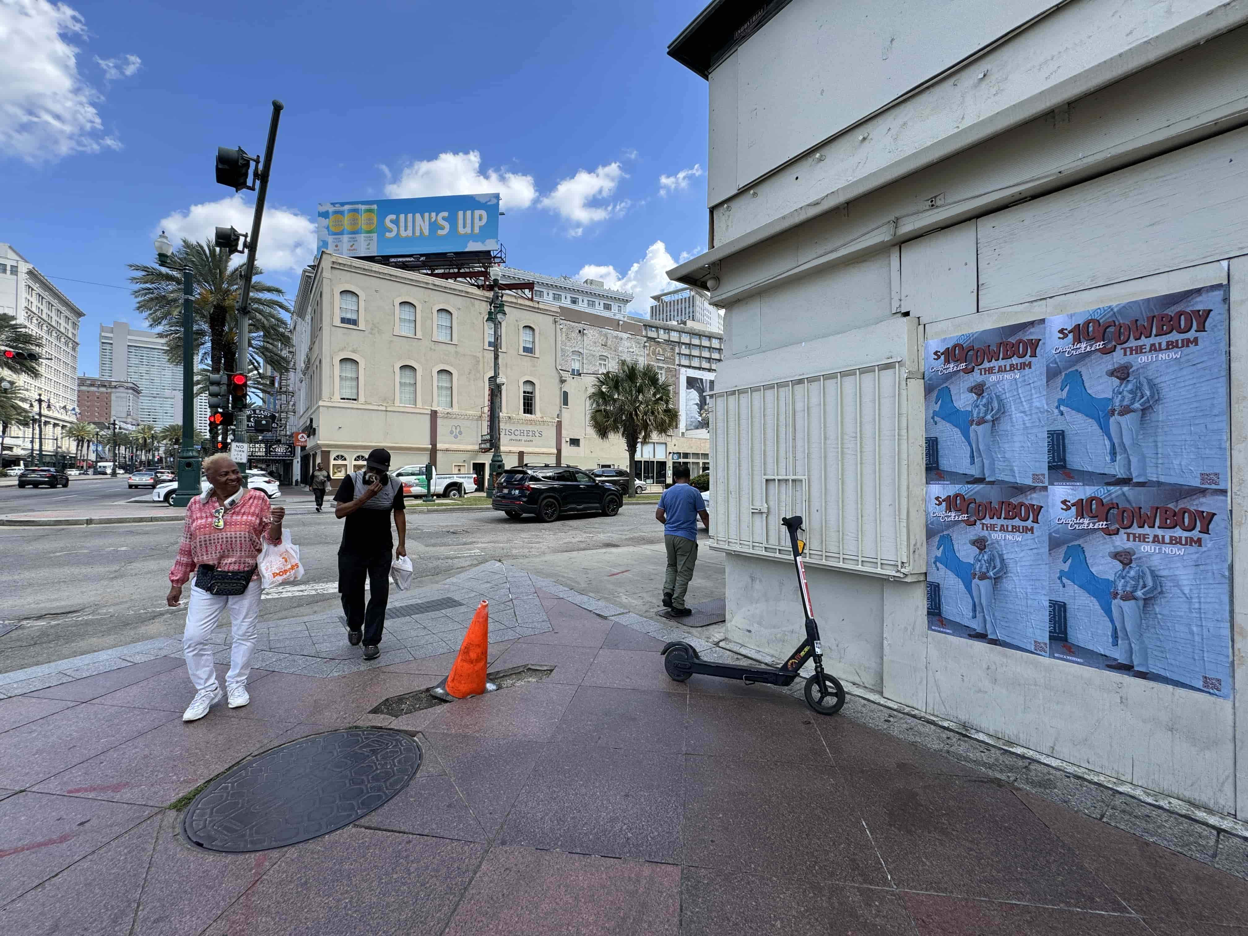 Targeted wild posting campaign in Nashville's music corridor, pairing 24x36 posters with key venue locations to build street buzz ahead of a debut album release.